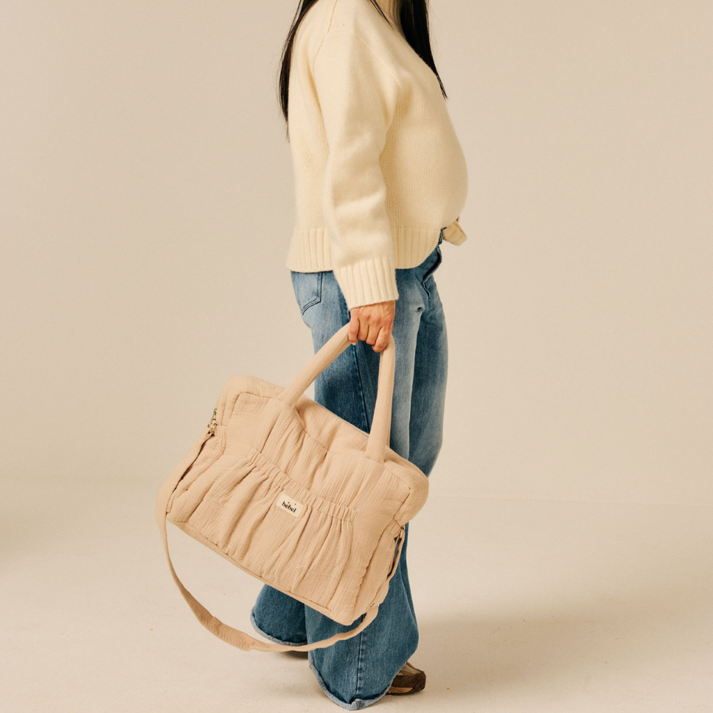 Le comme un bonbon, article phare de notre collection du même nom, est le sac idéal pour le quotidien d’un parent qui aime avoir tous ses indispensables sur lui. Ce sac à langer en double gaze a une contenance de 16 litres. Il possède 5 grandes poches dont 1 zippée à l'intérieur, et 3 compartiments de plus à l’extérieur. Il est disponible en plusieurs coloris ; amande, crème, vieux-rose, réglisse, kaki, grège. Le middle, en double gaze "effet lin", est légèrement plus petit, il sera idéal pour des sorties de quelques heures et vous permettra, avec ses 12 litres de contenance, d'emporter l'essentiel. Il possède 2 poches plaquées et 2 poches à biberon à l'intérieur, ainsi que 3 compartiments à l’extérieur. Il est disponible en plusieurs coloris ; terracotta, réglisse, sable, beige, kaki.